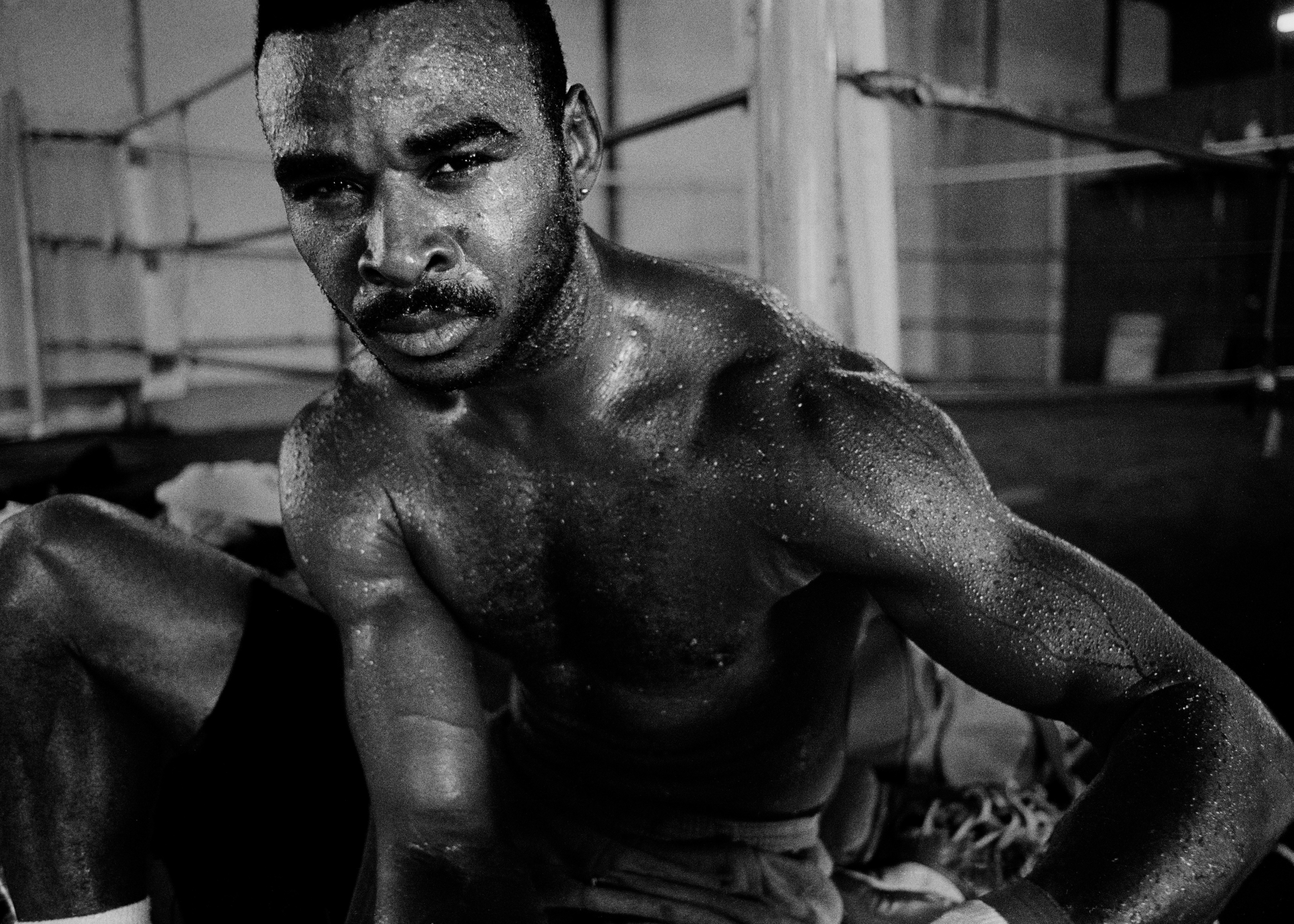 Noble Blood is a photographic series on boxing, created between 1988 and 1994 in Los Angeles and New York. The project captures the behind-the-scenes life of boxing, from training in the gym to the moments before and after the fights. The images, originally shot on film, were digitized and printed at 20 × 30 inches in 2022. The series was exhibited in New York in the early 90s and published in Photopro, an Italian art magazine.
